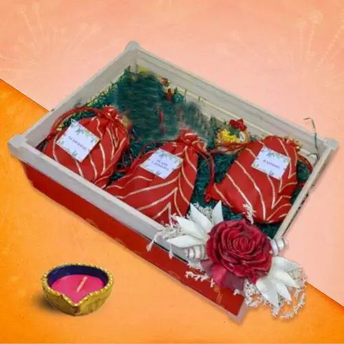 At the heart of this stunning hamper is a beautiful Diya, symbolizing the triumph of light over darkness. Illuminate your home with its gentle glow, creating a warm and welcoming ambiance for your loved ones.